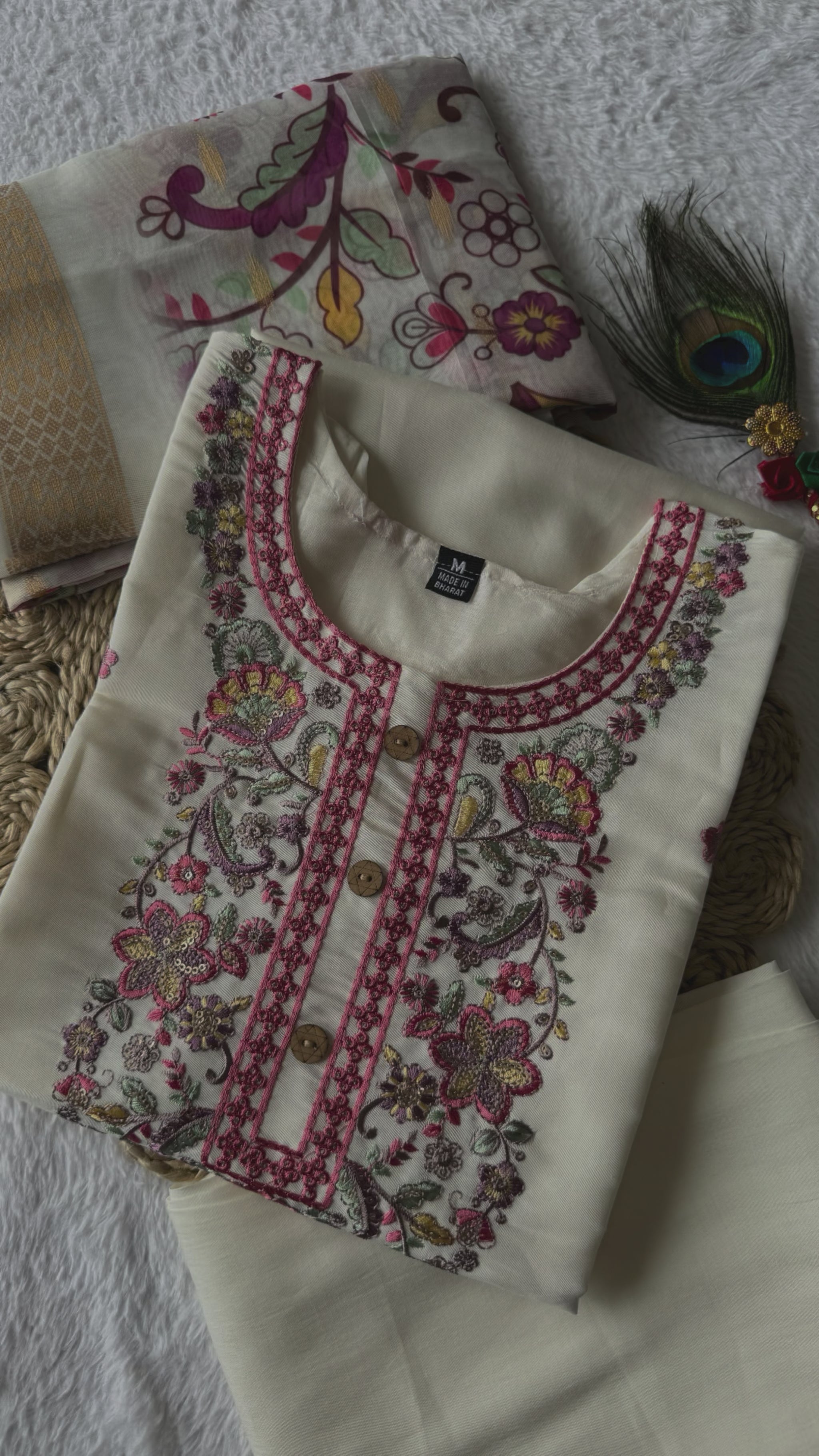 | ✨FABRIC: Premium Roman Silk, ✨COLOUR: Cream, ✨DUPATTA : Hevay Chanderi With Digital Print With Latkan (2.30 Mtr), ✨WORK : Embroidery Multy With Sequence Work, ✨INNER : Cotton Inner (Full), ✨SIZE: M-38, L-40, XL-42, XXL-44, 👍100% QUALITY SATISFACTION GUARANTEED PRODUCT |